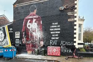 【相关新闻】阿诺德利物浦壁画今晨惨遭污损,被涂鸦大字:“老鼠、再见吧”